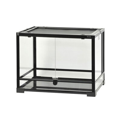 我が家でも現在使用中のガラス製ゲージです。サイズは幅60cm・奥行き45cm・高さ45cmほどで、リチャードソンジリス1匹で過ごすには十分な広さ。前面スライドドア式で、お世話や掃除がしやすい構造になっています。