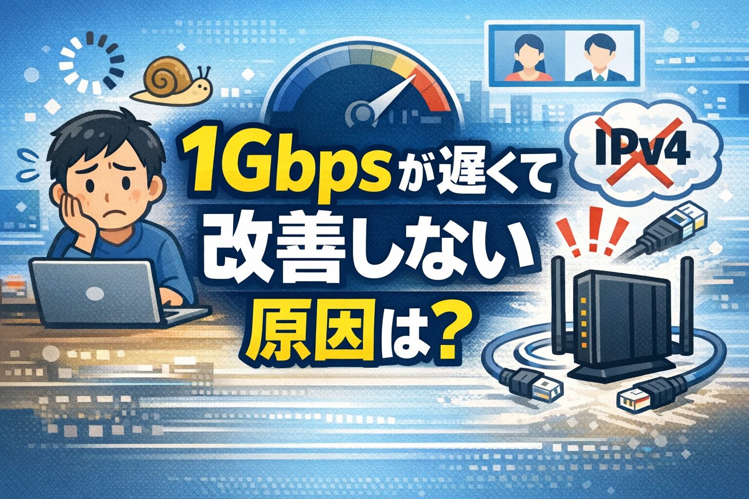 この記事では「1Gbpsなのに遅い」「いろいろ試したのに改善しない」という状態がなぜ起きるのかを整理し、ルーターだけでなく回線選びまで含めて見直すべき理由を、順を追って解説していきます。